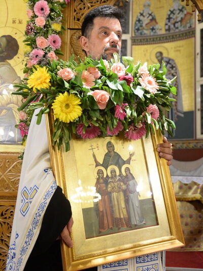 ●Τό ἀπόγευμα τῆς ἑορτῆς, ἐτελέσθη ὁ Μεθέορτος Ἑσπερινός καί ἐψάλη ἡ ἱερά Παράκληση πρός τίς Ἁγίες καί ἀκολούθησε ἡ λιτάνευσις τῆς Ἱερᾶς Εἰκόνας των.