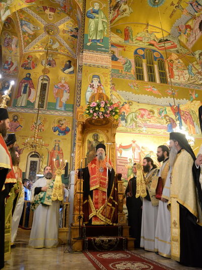 ●Ἀνήμερα χοροστάτησε στόν Ὂρθρο καί προέστη τῆς Θείας Λειτουργίας ὁ σεβασμιότατος Μητροπολίτης Πατρῶν κ.κ. Χρυσόστομος, ὁ ὁποῖος στό κήρυγμά του, μίλησε γιά τήν προτεραιότητα τῆς ἀγάπης στό Θεό, ἡ ὁποία πρέπει νά ὑπερβαίνει τόν ἑαυτό μας, τά προσφιλῆ μας πρόσωπα καί ὃ,τι ἂλλο κοσμικό καί γήϊνο. Παράδειγμα ἒφερε τήν Ἁγίαν ἒνδοξον Μεγαλομάρτυρα Σοφία, ἡ ὁποία προσέφερε τά τέκνα της καί τά ἐνεψύχωσε στό μαρτύριο ὑπέρ τοῦ Κυρίου ἡμῶν Ἰησοῦ Χριστοῦ.