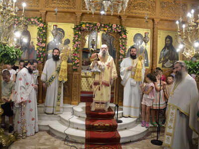 ●Στόν Πανηγυρικό Ἑσπερινό χοροστάτησε καί μίλησε ὁ σεβασμιότατος Μητροπολίτης Πατρῶν κ.κ. Χρυσόστομος, συγχοροστατοῦντος τοῦ Θεοφιλεστάτου Ἐπισκόπου Κερνίτσης κ. Χρυσάνθου.