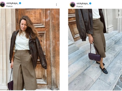 Και έδειχνε πολύ trendy, ακολουθώντας τις πιο προβεβλημένες προσταγές της διεθνούς μόδας για τη νέα σαιζόν. Οι γήινοι τόνοι και τα γνώριμα ανδρόγυνα καρό μικρού μεγέθους καθώς και μια culotte (δηλαδή βερμούδα που μοιάζει με φούστα) σε midi μήκος δέσποσαν στο look της.