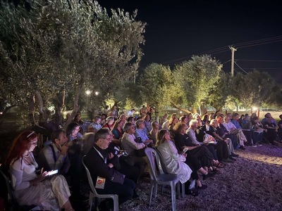 Το πρόγραμμα συνεχίστηκε στον υπέροχο ελαιώνα του «Προμηθέα», όπου οι στίχοι ένωσαν τους κόσμους. Με τις απαγγελίες τους οι ποιητές ανέδειξαν με τον καλύτερο τρόπο το φετινό πνεύμα του Φεστιβάλ: ορίζοντες που καθοδηγούν, γέφυρες που συνδέουν και φάροι που φωτίζουν απίθανες διαβάσεις.