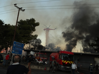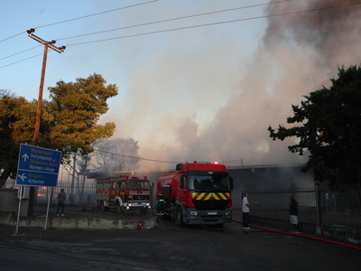 Έχει σταλεί προειδοποιητικό μήνυμα από το 112 στους κατοίκους της περιοχής, τους οποίους καλεί να παραμείνουν σε εσωτερικούς χώρους και να κλείσουν πόρτες και παράθυρα λόγω των επικίνδυνων καπνών.