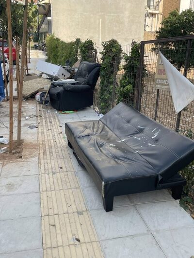 Η κατάσταση δεν περιορίζεται στα μικρά απορρίμματα, όπως φαίνετια και στις παρακάτω φωτογραφίες, καθώς στον δρόμο συχνά βρίσκονται ογκώδη αντικείμενα, όπως παλιά έπιπλα, στρώματα και ακόμη και καναπέδες, που παραμένουν για μέρες χωρίς να απομακρύνονται.