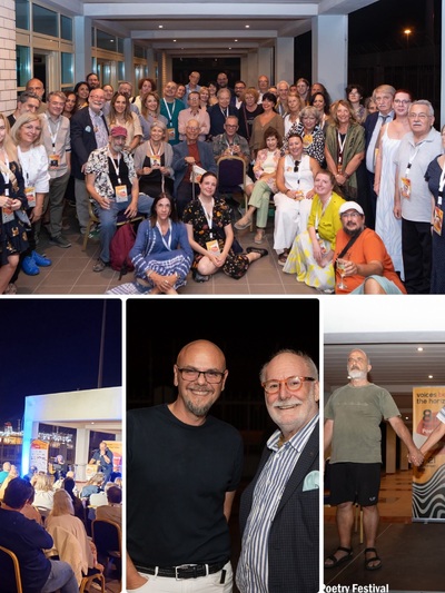 Το πρόγραμμα της ημέρας συνεχίστηκε το βράδυ, στη Βίλλα Κόλλα, όπου σε συνεργασία με το φεστιβάλ ‘Voix Vives de Méditerranée en Méditerranée’, παρουσιάστηκε με μοναδικό τρόπο μια συνάντηση που ανέδειξε τους κοινούς ορίζοντες δύο κόσμων, εκεί όπου οι φάροι πέρα από τις θάλασσες φωτίζουν τον διάλογο και το ανήκειν μέσα από την ποίηση. Από το Αλγέρι στην Τύνιδα, στη Λευκωσία, στην Πάτρα, στο Μιντούρνο, στη Σέτ, στη Βαλένθια, στο Μπουένος Άιρες και στην Κάλι, ποιητές της Μεσογείου και της Λατινικής Αμερικής συναντήθηκαν στην Πάτρα μέσα από ένα ποιητικό ταξίδι που διάσχισε θάλασσες και ορίζοντες χωρίς προορισμό και σύνορα.