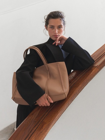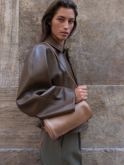 Η έκπληξη έρχεται με την επιστροφή του super trendy suede, ενός υλικού ζεστού, βελούδινου και απίστευτα πολυτελούς. Το συναντάμε σε αποχρώσεις του καφέ και του βουργουνδί. Χαρίζει νέα αίσθηση στις μικρές τσάντες αλλά και στην καινούρια, oversized tote, που είναι η επιτομή της αβίαστης κομψότητας. Κυκλοφορούν επίσης τα σχήματα mini barrel και mini washbag, Venetia clutch, Venus bag, flap bag σε φρέσκιες εκδοχές μαγνητίζοντας το ενδιαφέρον μας.