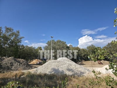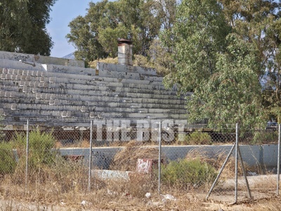 Ο χώρος που ανήκει στη γενική γραμματεία αθλητισμού φαίνεται σαν να έχει παραχωρηθεί προσωρινά για εναπόθεση υλικών προς χρήση από εργολάβο που πραγματοποιεί έργα στην πόλη.