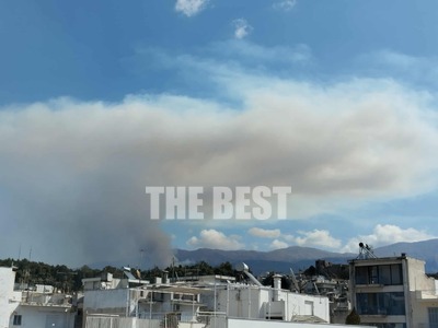 Η πυρκαγιά εκδηλώθηκε σε δύσβατη περιοχή και πνέουν δυνατοί άνεμοι.