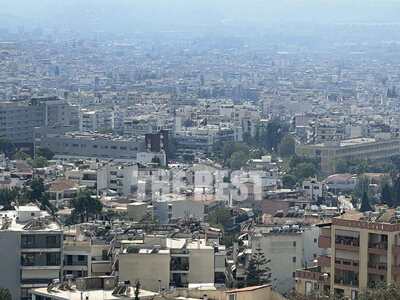 Κοιτώντας την πόλη από ψηλά, από την περιοχή της Αρόης, διακρίνει κανείς το νέφος καπνού που έχει σκεπάσει μεγάλο μέρος της Πάτρας.