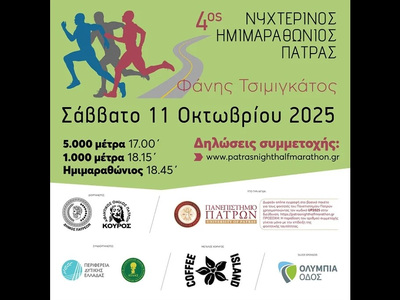 Αναλυτικές πληροφορίες μπορείτε να εντοπίσετε στον παρακάτω σύνδεσμο: https://www.upatras.gr/patrathlon-2025-i-patra-giortazei-ton-athlitismo/