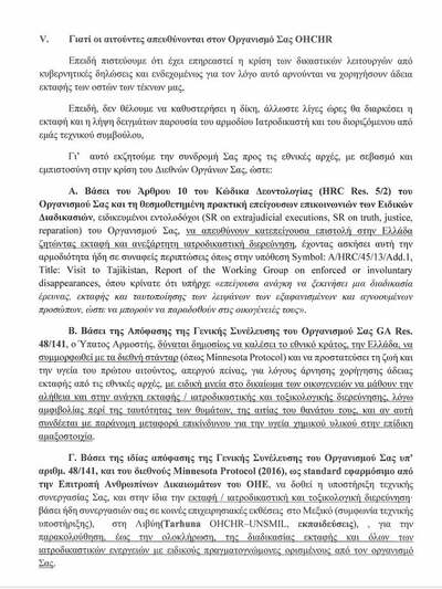 Όπως σημειώνουν, το αίτημά τους στηρίζεται σε διεθνώς αναγνωρισμένες αρχές, όπως το δικαίωμα των οικογενειών να γνωρίζουν την αλήθεια, αλλά και στην υποχρέωση των κρατών να διασφαλίζουν αξιόπιστη και αποτελεσματική διερεύνηση όταν υπάρχουν θάνατοι ή εξαφανίσεις κάτω από αδιευκρίνιστες συνθήκες. Με την προσφυγή τους προς τον Ύπατο Αρμοστή, οι συγγενείς ζητούν να εφαρμοστούν και στην Ελλάδα τα ίδια πρότυπα που διεθνώς θεωρούνται αναγκαία για τη δικαίωση των θυμάτων και τον σεβασμό των δικαιωμάτων των οικογενειών τους.