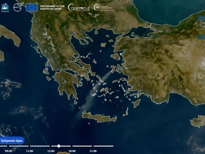 Καίριος επίσης είναι ο ρόλος των δορυφορικών παρατηρήσεων, των τεχνικών ανάλυσης εικόνας και των σύγχρονων μεθόδων παρακολούθησης στην έγκαιρη ανίχνευση, τη χαρτογράφηση της εξάπλωσης και την αποτίμηση των επιπτώσεων των πυρκαγιών στο φυσικό και ανθρωπογενές περιβάλλον. Για παράδειγμα στην πυρκαγιά στη Χίο στις 23 Ιουνίου 2025 όπως απεικονίζεται μέσω δορυφόρου εκτεταμένο πλούμιο (σχηματισμός, στήλη) καπνού που εκκινεί από το νησί και μεταφέρεται νοτιοδυτικά, καλύπτει μεγάλο τμήμα του Αιγαίου μέχρι και την Κρήτη (Γράφημα 4*). Η συγκεκριμένη εικόνα, όπως τονίζει η επιστημονική ομάδα, αποτυπώνει με εντυπωσιακή σαφήνεια τη χωρική διάσταση του φαινομένου, αναδεικνύοντας τον ρόλο των ατμοσφαιρικών συνθηκών -και συγκεκριμένα των ισχυρών βόρειων ανέμων- στην ταχεία μεταφορά καπνού και αιωρούμενων σωματιδίων σε εκατοντάδες χιλιόμετρα μακριά από την πηγή τους.