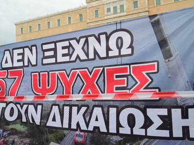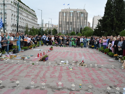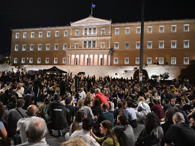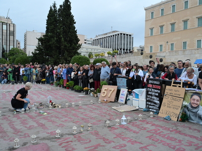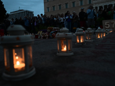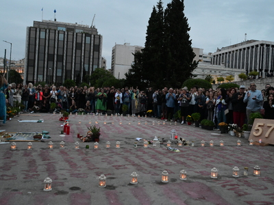 57 φαναράκια, όσα και τα θύματα της τραγωδίας των Τεμπών άναψαν στο Σύνταγμα.