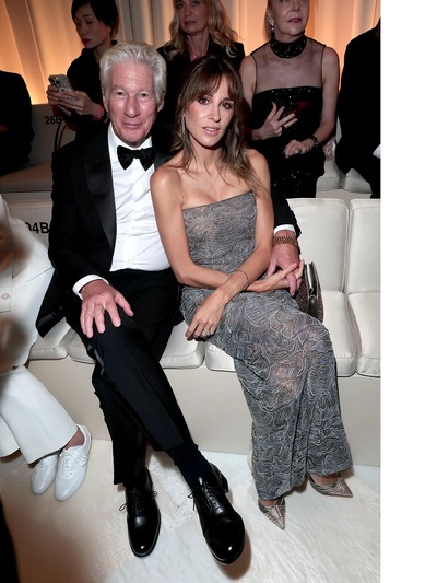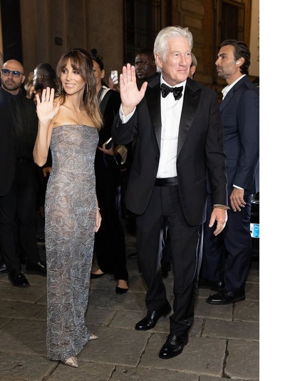 Ο Ρίτσαρντ Γκιρ κατέφθασε από την Ισπανία, όπου μένει μόνιμα με τη γυναίκα του Αλεχάντρα. Ηθελε να φωτογραφίζεται συνεχώς μαζί της μιλώντας για το υπέροχο φόρεμά της. Δεν θα μπορούσε να απουσιάσει αφού αυτός συνδέθηκε πρώτος με το style Armani που «πέταξε» στο Χόλιγουντ. Ανέδειξε ως νεαρό sex symbol τα «διαφορετικά» κοστούμια του οίκου που εξελίχθηκαν σε παγκόσμια σχολή ένδυσης.