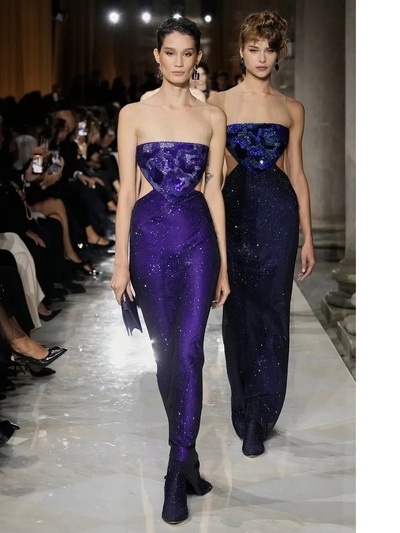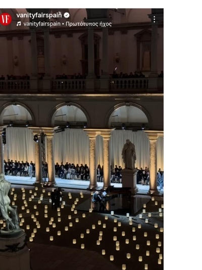 Ολόγυρα ήταν τα μίνιμαλ φαναράκια που είδαμε και στην κηδεία του Giorgio ενώ ακουγόταν live πιάνο. Τα στιγμιότυπα ήταν χορταστικά στα social media. To τελευταίο look ήταν μια μπλε απαστράπτουσα τουαλέτα με το πορτρέτο του Armani στο μπούστο.