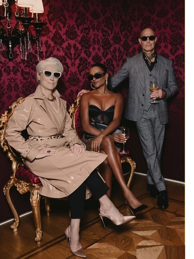 Παρούσα μάλιστα στην επίδειξη ήταν και η Αννα Γουίντουρ, από την οποία είναι εμπνευσμένος ο χαρακτήρας της Miranda. Στα παρασκήνια βέβαια η Στριπ έβγαλε διάφορες φωτογραφίες με τους σχεδιαστές και την ίδια τη Γουίντουρ με μεγάλο κέφι.