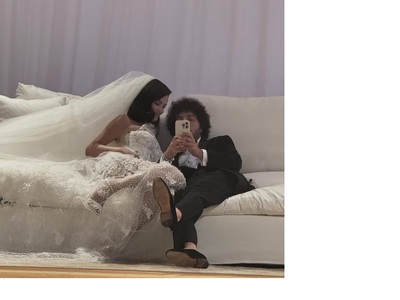 Σε νέο στιγμιότυπο η Σελένα εμφανίζεται και με δεύτερο bridal look, ακόμα πιο παραμυθένιο, στράπλες, με έντονη δαντέλα και πλούσιο, τούλινο πέπλο.