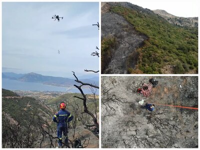 Τότε ανέλαβε δράση η ομάδα ΙΚΑΡΟΣ Π.Σ. Δυτικής Ελλάδας και με το πανίσχυρο drone της (Matrice 350 RTK) προσάρμοσε στο ειδικό σύστημα ρίψης του drone (CZI TH4 V2) μπουκάλια νερό και στη συνέχεια και τροφή αποστέλλοντάς το υλικό σε μια απόσταση σχεδόν 1 χιλιομέτρου στον ορεινό όγκο και τις συντεταγμένες που τους έδωσαν οι επίγειες δυνάμεις οι οποίες ανέμεναν στο σημείο.