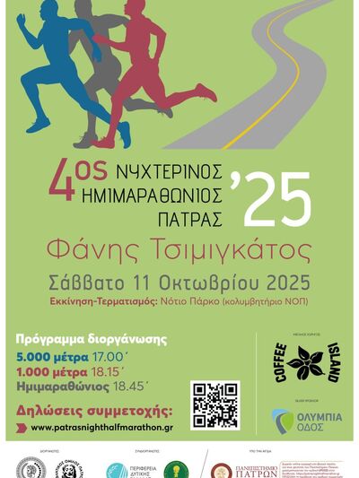 Ο ΑΓΣ Άτλας Πατρών 2020 στηρίζει τον 4ο Νυχτερινό Ημιμαραθώνιο Πάτρας 2025 "Φάνης Τσιμιγκάτος" ως συνδιοργανωτής που θα διεξαχθεί στις 11 Οκτωβρίου!