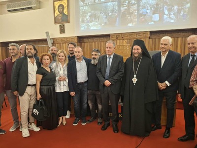 Την εκδήλωση χαιρέτησε, επίσης, ο εκπρόσωπος του σεβασμιότατου Μητροπολίτη Πατρών κ.κ. Χρυσοστόμου, πανοσιολογιώτατος αρχιμανδρίτης πατήρ Ιωσήφ.