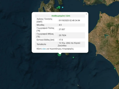 Ισχυρός σεισμός μεγέθους 4,5 Ρίχτερ ταρακούνησε τα ξημερώματα τη Ζάκυνθο.