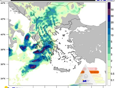 Μεγαλύτερη επικινδυνότητα στα νησιά του Ιονίου (κυρίως Ζάκυνθο, Κεφαλονιά) και τη δυτική και νότια Πελοπόννησο την Πέμπτη μέχρι νωρίς το απόγευμα