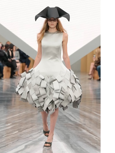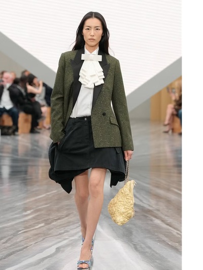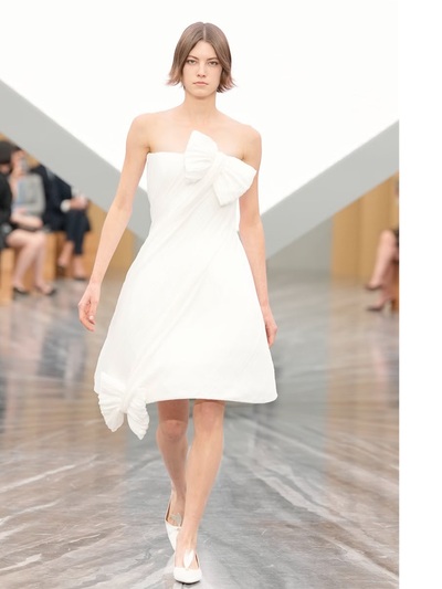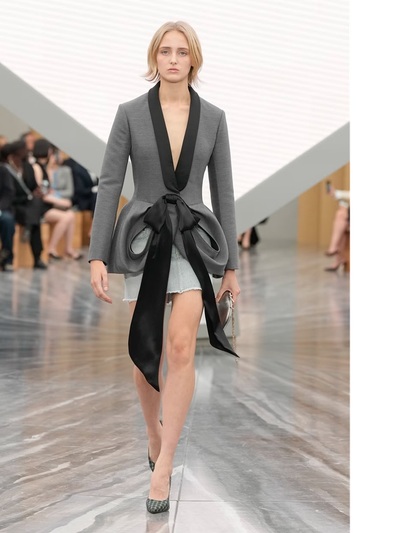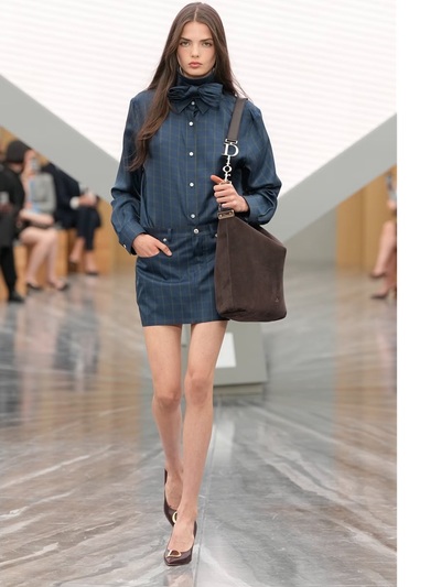 «Ξαναδιάβασε» την θρυλική εποχή του Dior «New Look» χάριζοντάς της πιο σύγχρονη, street μορφή. Η collection Άνοιξη/Καλοκαίρι 2026 διέθετε ένα νέο cropped σχήμα στα αγαπημένα bar jackets, πουκάμισα με φιόγκους στο λαιμό σε style Lord Byron, φορέματα με ρετρό βικτοριανούς όγκους, boxy παλτό, cigarette παντελόνια, οβάλ κάπες αλλά και μικροσκοπικά μίνι (στενά και μπαλούν). Kαρό, σατέν, ρομαντικά ανθάκια είχαν την τιμητική τους.