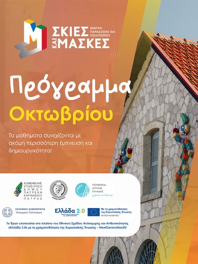 Τα εργαστήρια του έργου «Σκιές και Μάσκες – Κέντρο Παράδοσης και Πολιτισμού» της ΚΕΔΗΠ-Καρναβάλι Πάτρας συνεχίζουν δυναμικά και τον Οκτώβριο.
