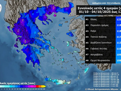 Τέλος, αξίζει να σημειωθεί ότι 14 σταθμοί του δικτύου κατέγραψαν συνολική βροχόπτωση άνω των 100 χιλιοστών στο τετραήμερο.