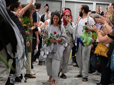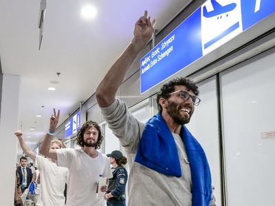 Οι 27 Έλληνες και οι δεκάδες ακτιβιστές άλλων εθνικοτήτων, ανάμεσά τους και η Γκρέτα Τούνμπεργκ, που είχαν συλληφθεί και κρατηθεί στο Ισραήλ, έφτασαν στην Αθήνα με ειδική πτήση τσάρτερ από το διεθνές αεροδρόμιο Eilat-Ramon.