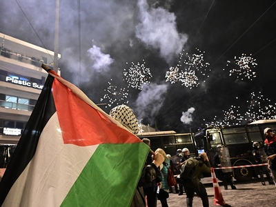 Νωρίτερα, τόσο στην Αθήνα όσο και τη Θεσσαλονίκη αντηχούσε το μήνυμα “λευτεριά στην Παλαιστίνη” κατά τις μεγαλειώδεις ειρηνικές πορείες για τη Γάζα.