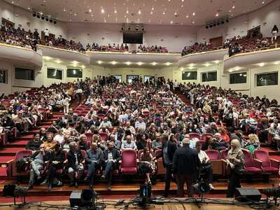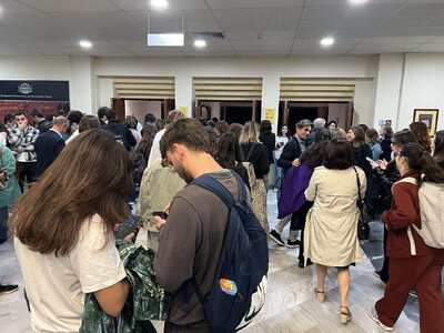 Πλήθος κόσμου-φορείς, φοιτητές, μέλη της ακαδημαϊκής κοινότητας και θεατρόφιλοι- γέμισαν κάθε γωνιά της αίθουσας για να παρακολουθήσουν την πολυσυζητημένη «Ηλέκτρα» του Σοφοκλή, σε σκηνοθεσία Δημήτρη Τάρλοου.