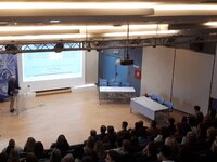 Στη συνέχεια ο Αντιπρύτανης Ακαδημαϊκών Θεμάτων και Οικονομικών του Πανεπιστημίου Πατρών κ. Ιωάννης Βενέτης χαιρετίζοντας την εκδήλωση εκ μέρους του Πανεπιστημίου Πατρών και του Πρύτανη κ. Χρήστου Μπούρα συνεχάρη τους διοργανωτές για την πρωτοβουλία και παρότρυνε και άλλα εργαστήρια Τμημάτων του Πανεπιστημίου να συμμετάσχουν σε αυτό το καινοτόμο πρόγραμμα.