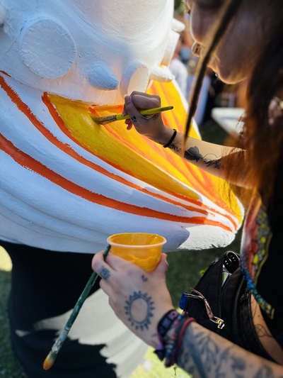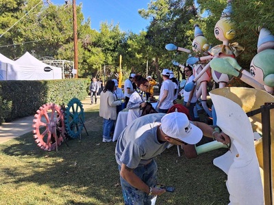 Έντονο χρώμα Πατρινού Καρναβαλιού έλαβε το Πάρκο της Ειρήνης στην Πανεπιστημιούπολη την Πέμπτη 9 και την Παρασκευή 10 Οκτωβρίου 2025 από τις 12.00 έως τις 14.00 κατά τη διάρκεια του Εργαστηρίου Καρναβαλικής τέχνης (ανοιχτού εργαστηρίου δημιουργίας κατασκευών) που πραγματοποιήθηκε από τους εκπαιδευτές Καρναβαλικών Κατασκευών του Κέντρου Παράδοσης και Πολιτισμού «Σκιές και Μάσκες» και ξετυλίχτηκε στο περίπτερο της ΚΕΔΗΠ δίνοντας την ευκαιρία σε φοιτητές και κοινό να γνωρίσουν από κοντά παραδοσιακές Καρναβαλικές τεχνικές (τακάρισμα φελιζόλ, σκάλισμα, χάρτωμα και ζωγραφική κ.α), υλικά και τεχνικές μέσω των οποίων δημιουργούνται οι καρναβαλικές κατασκευές.
