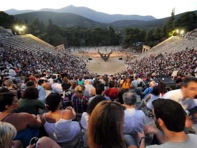 Κατάμεστο το Αρχαίο θέατρο της Επιδαύρου από την παράσταση της Μήδειας του Ευριπίδη. Η παράσταση ανέβηκε σε σκηνοθεσία Αντώνη Αντύπα και παρουσιάστικε για δύο μέρες στις 22 και στις 23 Ιουλίου.