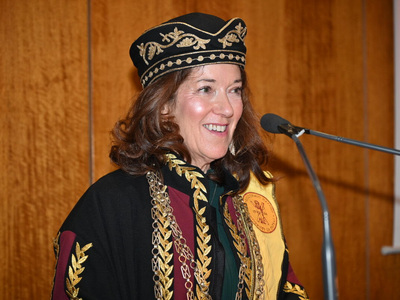 Ο Πρύτανης συνέχισε υπογραμμίζοντας τη διεθνή διάσταση της λογοτεχνικής πορείας της Hislop, που περιλαμβάνει σημαντικές αναγνωρίσεις και βραβεύσεις, όπως το τιμητικό διδακτορικό από το Πανεπιστήμιο του Σέφιλντ και την ένταξή της στη Βασιλική Εταιρεία Λογοτεχνίας. Επίσης, ανέφερε την τιμητική υπηκοότητα που της απονεμήθηκε το 2020 για τη συμβολή της στην προβολή της Ελλάδας στο εξωτερικό.
