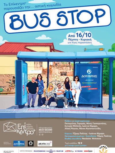 Μία πρωτότυπη λοιπόν, ...αστική κωμωδία με τίτλο "Bus Stop" που σημαίνει στάση λεωφορείου σε σκηνοθεσία του Τζίμη Πολίτη, γνώριμου μας και άλλες επιτυχημένες θεατρικές δουλειές αλλά και από την παρουσίαση του Πατρινού Καρναβαλιού, κάνει πρεμιέρα στο Επίκεντρο+.
