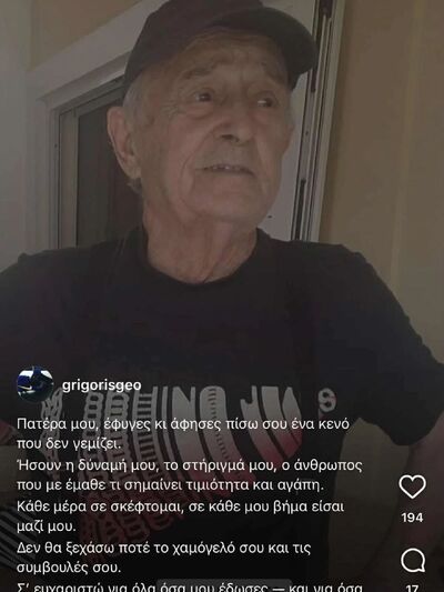 «Πατέρα μου, έφυγες κι άφησες πίσω σου ένα κενό που δεν γεμίζει. Ήσουν η δύναμή μου, το στήριγμά μου, ο άνθρωπος που με έμαθε τι σημαίνει τιμιότητα και αγάπη.