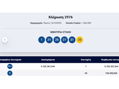 Στη δεύτερη κατηγορία 20 τυχεροί κέρδισαν από 100.000 ευρώ.