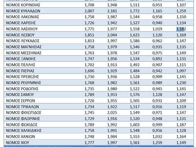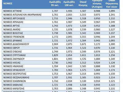 Ειδικότερα, η διάθεση του πετρελαίου θέρμανσης ξεκίνησε στον Νομό Δωδεκανήσου από 1,30 ευρώ το λίτρο, στον Νομό Κυκλάδων από 1,25 ευρώ το λίτρο, στον Νομό Ρεθύμνης 1,23 ευρώ το λίτρο, στον Νομό Κέρκυρας 1,19 ευρώ το λίτρο και στον Νομό Άρτας 1,18 ευρώ το λίτρο.