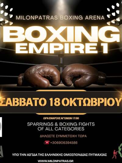 Το BOXING EMPIRE 1 δεν ήταν απλώς μια διοργάνωση. Ήταν μια γιορτή της πυγμαχίας, μια συνάντηση ανθρώπων με κοινό πάθος, αξίες και όραμα. Ο ΑΣ ΜΙΛΩΝ ΠΑΤΡΑΣ ευχαριστεί όλους όσοι συνέβαλαν στην επιτυχία της βραδιάς , αθλητές, προπονητές, συλλόγους, κριτές, εθελοντές και θεατές και δίνει ραντεβού στο BOXING EMPIRE 2, με την υπόσχεση για ακόμη πιο δυνατές στιγμές και περισσότερες εκπλήξεις!!!", αναφερεται σε ανακοίνωση.