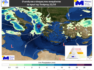 Σύμφωνα με την κατηγοριοποίηση των επεισοδίων βροχόπτωσης (Regional Precipitation Index), η οποία εφαρμόζεται από τη μονάδα Meteo του Εθνικού Αστεροσκοπείου Αθηνών, το επεισόδιο βροχόπτωσης για την Τετάρτη 22/10 κατατάσσεται στην Κατηγορία 3 (Σημαντική).
