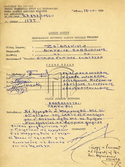 Το Δελτίο Ελέγχου της επιτροπής έχει και πιο συγκεκριμένες πληροφορίες. Τα μέλη της επιτροής ζήτησαν να αλλαχθεί ή να απαλειφθεί ο 6ος στίχος του CANTO «ο πατέρας μου ο Μπάτης ήρθε από τη Σμύρνη … όσοι αγαπούνε το βρώμικο ψωμί». Επίσης, με τη μειοψηφία ενός μέλους, η επιτροπή ζήτησε να αλλαχθούν ή να απαλειφθούν οι στίχοι «Ώσπου οι τροχιές μας συναντούνε τις βασικές σου τις Αρχές».