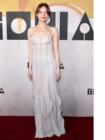 Αυτή τη φορά, τη Στόουν συνόδευε και ο σύζυγός της Ντέιβ ΜακΚάρι. Το φόρεμά της ήταν ημιδιάφανο με κεντήματα, από τη συλλογή της ερχόμενης άνοιξης του διάσημου γαλλικού οίκου, του οποίου η star παραμένει ambassador.