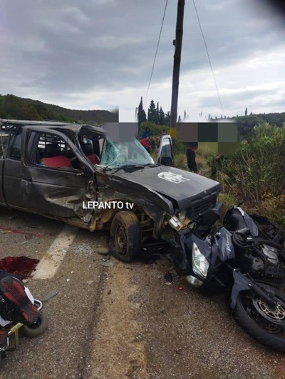 Δύο μηχανές μεγάλου κυβισμού, συγκρούστηκαν μετωπικά με ένα αγροτικό. Από την σύγκρουση τραυματίστηκε θανάσιμα ο αναβάτης της μίας μηχανής, 21 ετών ενώ ο άλλος τραυματισμένος, 37 ετών μεταφέρθηκε με ασθενοφόρο στο νοσοκομείο Άγιος Ανδρέας, στην Πάτρα.
