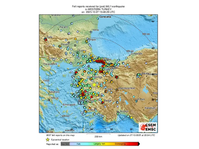 Ισχυρός σεισμός μεγέθους 6,1 Ρίχτερ σημειώθηκε το βράδυ της Δευτέρας (27/10/25) στην Δυτική Τουρκία.