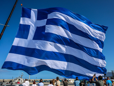 Μια τεράστια ελληνική σημαία εμβαδού 1.440 τετραγωνικών μέτρων υψώθηκε το πρωί της 28ης Οκτωβρίου στο Ηράκλειο Κρήτης, τιμώντας τη μεγάλη Εθνική Επέτειο.