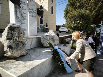 Η Αντιδήμαρχος των Δημοτικών Ενοτήτων Μεσσάτιδος, Παραλίας και Βραχνεΐκων, Αναστασία Τογιοπούλου, παραβρέθηκε εκπροσωπώντας την Δημοτική Αρχή, στην Δοξολογία που εψάλη στον Ι.Ν. Αγίου Βασιλείου και αμέσως μετά κατέθεσε στεφάνι στο Μνημείο των Πεσόντων από την περιοχή, που βρίσκεται στο προαύλιο του Ναού.