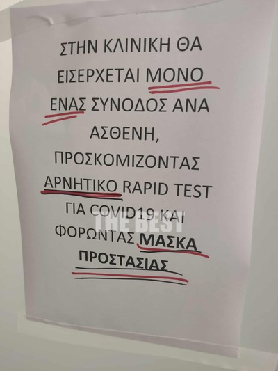 Παράλληλα, επιτρέπεται μόνο ένας συνοδός ανά ασθενή, προκειμένου να περιοριστεί ο συνωστισμός στους θαλάμους και στους διαδρόμους. Για τη διευκόλυνση του κοινού, στην είσοδο του νοσοκομείου έχει τοποθετηθεί ειδικό κουβούκλιο ελέγχου, όπου πραγματοποιούνται δωρεάν rapid test καθημερινά, από τις 8:00 έως τις 12:00 το πρωί.