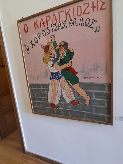 Περιλάμβανε φιγούρες κατασκευασμένες από διάφορα υλικά (χαρτόνι, σκαλιστό δέρμα, ζελατίνα), ρεκλάμες, βιβλία με έργα καραγκιοζοπαιχτών, έργα ζωγραφικής και χαρακτικής, από τη μεγάλη δωρεά της Μαίρης & Τάκη Τσονάκα το 2013, στη Δημοτική Πινακοθήκη Πατρών. Στην έκθεση εκτέθηκαν επίσης έργα της παραγωγής «Πάτρα, Γενέτειρα του Καραγκιόζη» του Δήμου Πατρέων, που οργανώθηκε το 1998 στις αίθουσες Hansen του Παλαιού Δημοτικού Νοσοκομείου- με σκηνικά και φιλοτεχνημένες προσωπογραφίες Πατρινών καραγκιοζοπαιχτών από τον Κώστα Μακρή. Η εκθεσιακή ενότητα συμπληρώθηκε με το σπάνιο ημερολόγιο της Pirelli του 1970-με έξι αναπαραγωγές έργων του Παναγιώτη Μιχόπουλου και του Ευγένιου Σπαθάρη-, καθώς και τις εκδόσεις του «Διεθνούς Φεστιβάλ Θεάτρου Σκιών» και του «Διαγωνιστικού Φεστιβάλ Ελληνικού Θεάτρου Σκιών» του Δήμου Πατρέων που διεξάγονταν παλαιότερα. Επιμέλεια έκθεσης: Μαρία Αργυροπούλου, Δημήτρης Παπανικολάου, Γιάννα Παναγοπούλου.