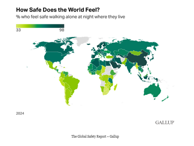 Σε παγκόσμιο επίπεδο, το 73% των ενηλίκων δηλώνει ότι αισθάνεται ασφαλές να περπατά μόνο του τη νύχτα στην πόλη ή την περιοχή όπου ζει. Αυτό είναι και το υψηλότερο ποσοστό που έχει καταγραφεί από το 2006, με αύξηση 13% την τελευταία δεκαετία.